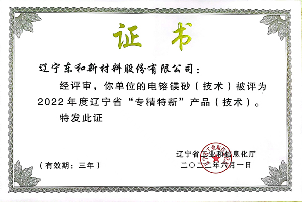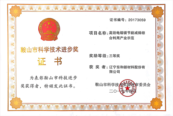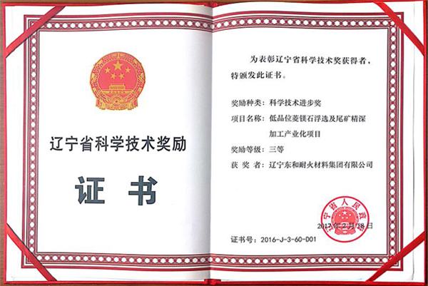In 2015, the company was identified by Ministry of Industry as the only demonstration project in magnesite comprehensive utilization;